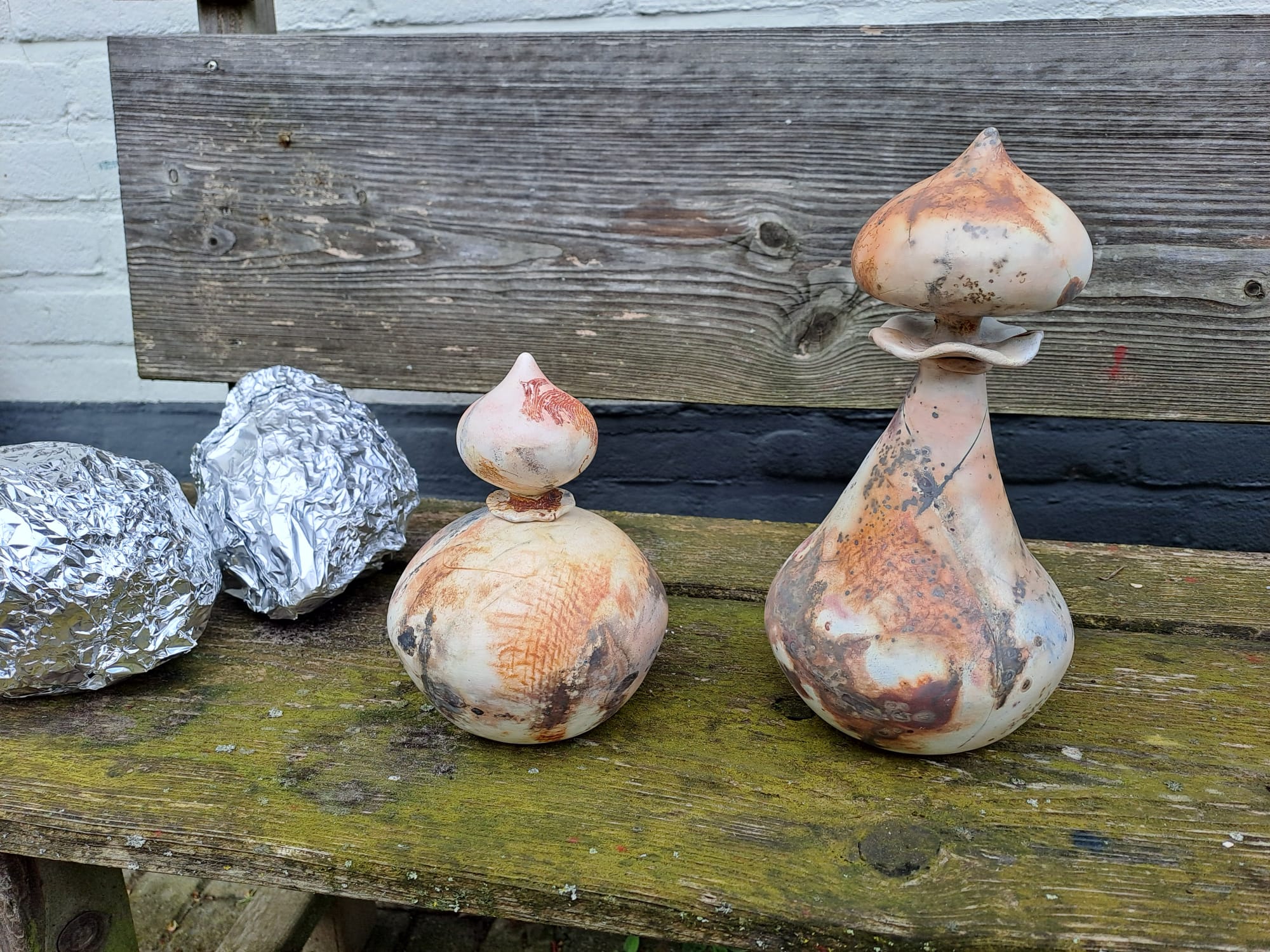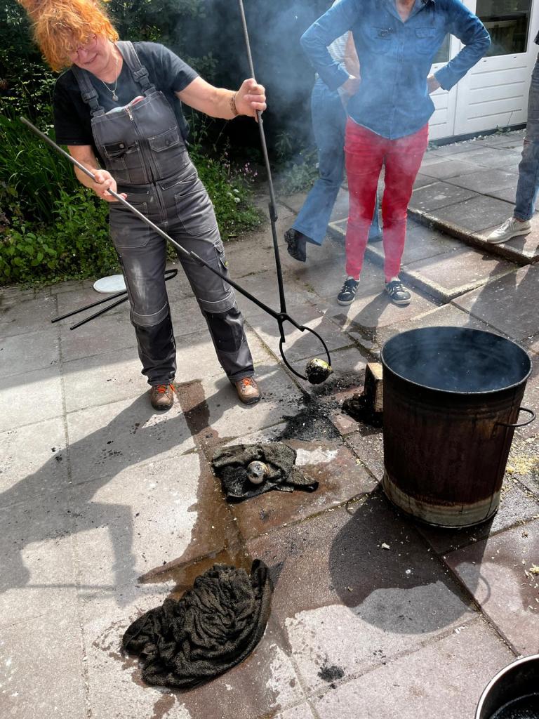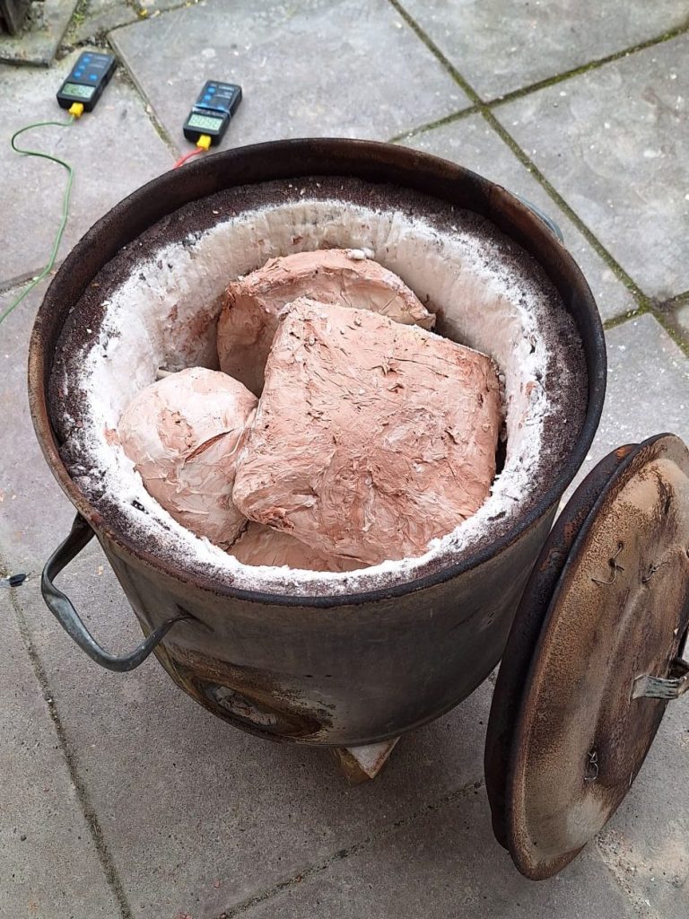 Saggar stoken is een methode waarbij keramiek in een gesloten houder, een ‘saggar’, wordt geplaatst met brandbare materialen om unieke, rokerige en gemarmerde patronen op het oppervlak te creëren.