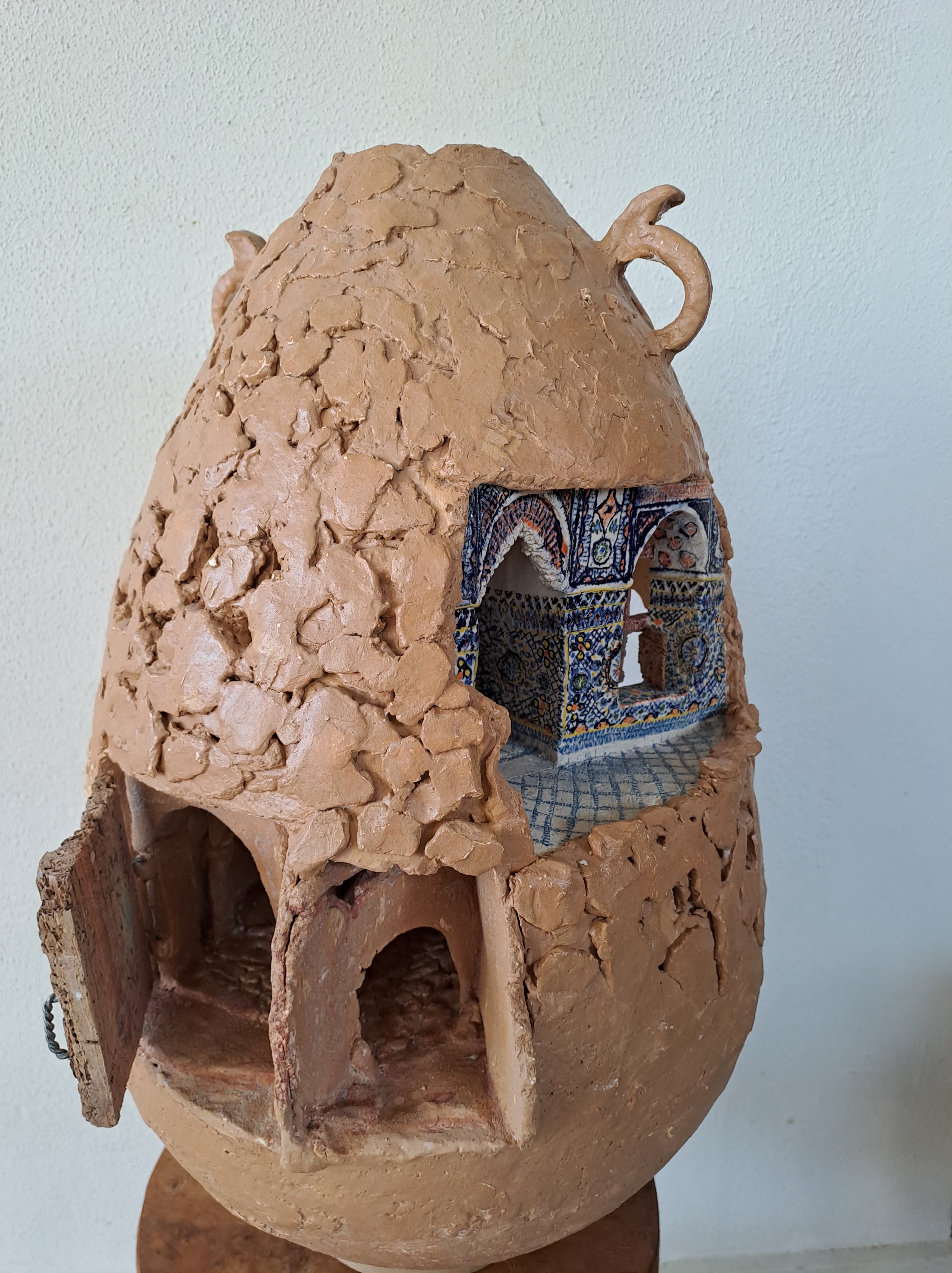 Een reis naar Marokko gaf aanleiding om in reliëf schilderijen te maken met leem.
